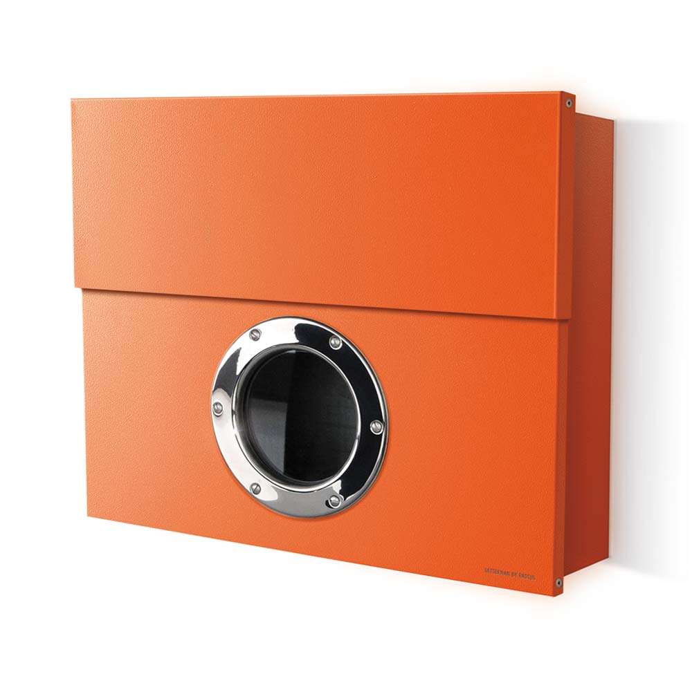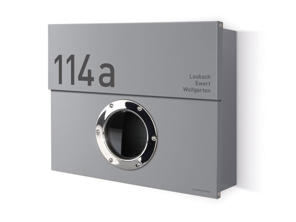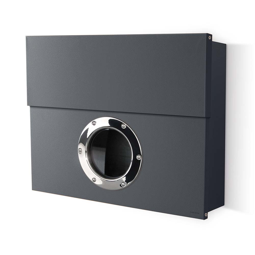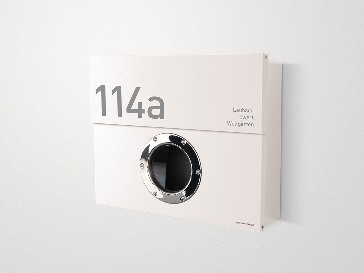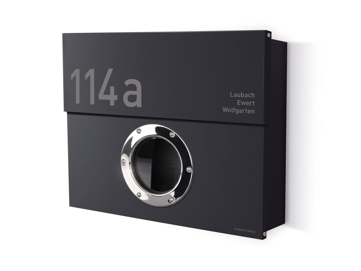 Perfektion im Detail: Der neue Briefkasten Letterman XXL aus Edelstahl hat mächtig was unter der Haube! Unter der großzügigen oberen Klappe befindet sich ein praktisches Fach für Zeitungen und Zeitschriften sowie ein ein großzügig dimensionierter Einwurfschlitz für Briefe und ähnliches. So ist alles im Großformat vor Wind und Wetter geschützt. Das markante Bullauge macht den Briefkasten zu einem echten Hingucker – und ist praktisch dazu. Verrät es doch auf einen Blick, ob der heiß ersehnte Loveletter schon angekommen ist.