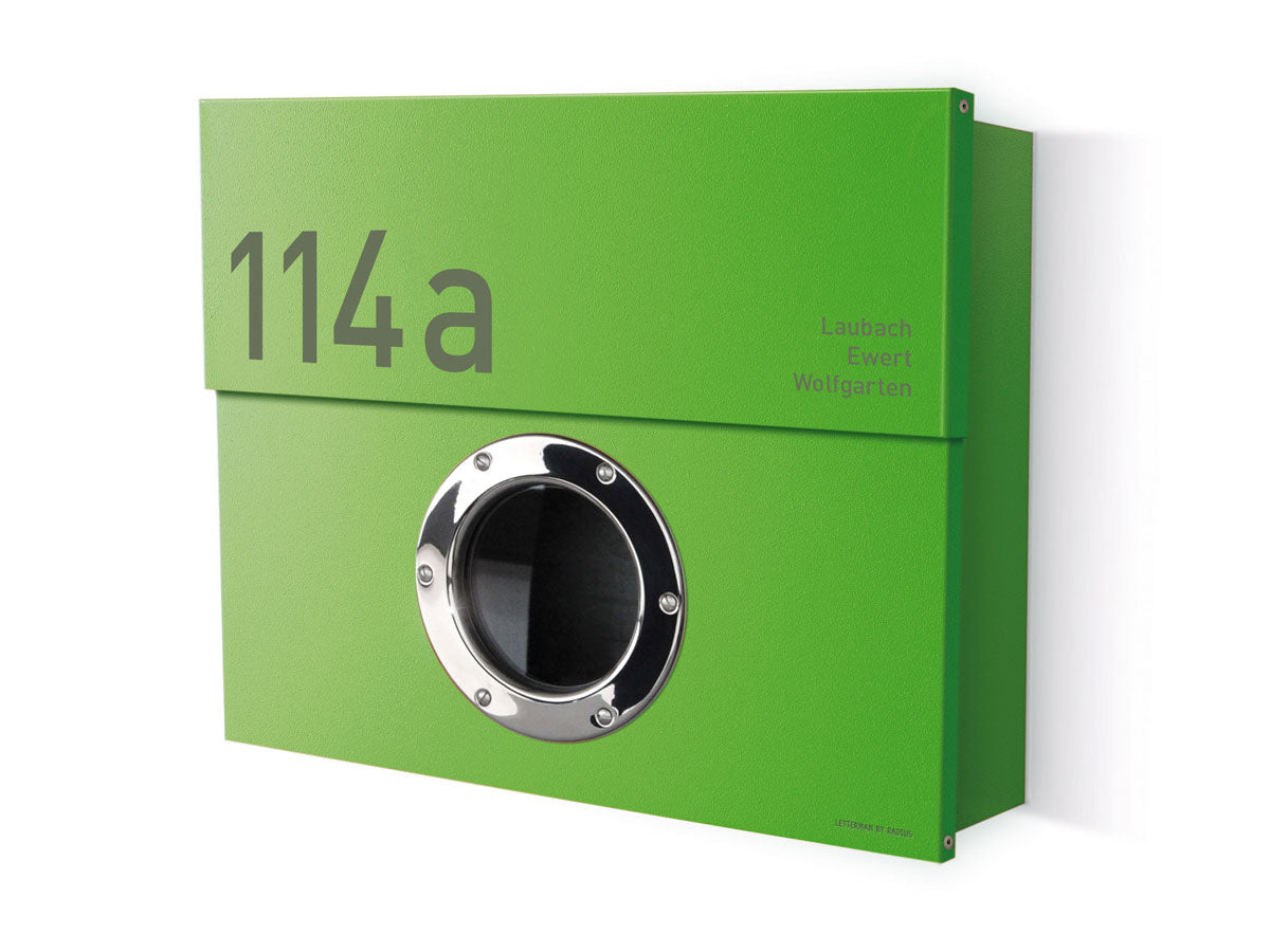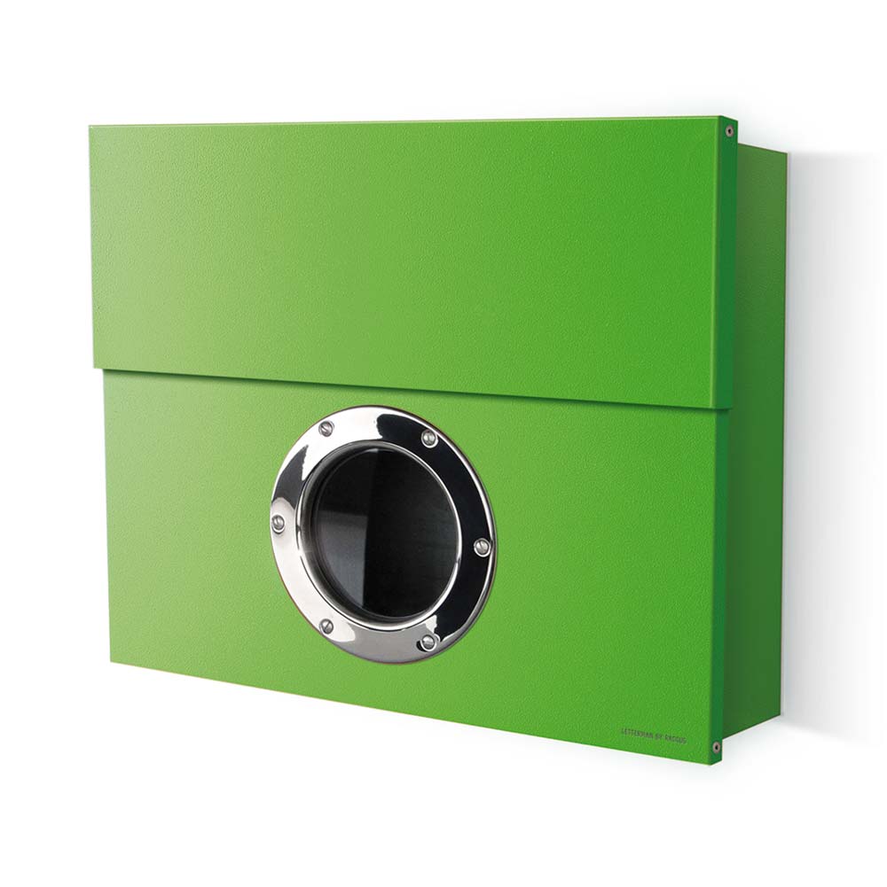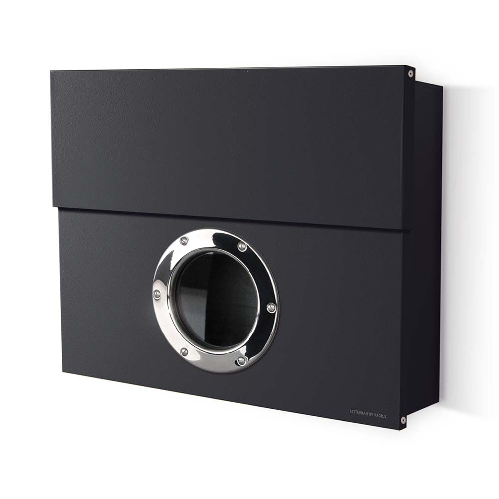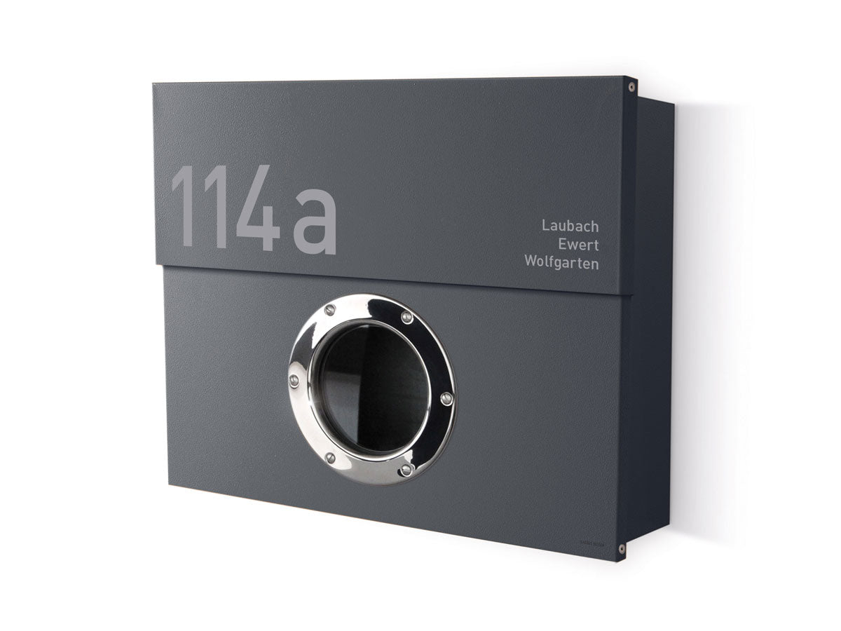 Perfektion im Detail: Der neue Briefkasten Letterman XXL aus Edelstahl hat mächtig was unter der Haube! Unter der großzügigen oberen Klappe befindet sich ein praktisches Fach für Zeitungen und Zeitschriften sowie ein ein großzügig dimensionierter Einwurfschlitz für Briefe und ähnliches. So ist alles im Großformat vor Wind und Wetter geschützt. Das markante Bullauge macht den Briefkasten zu einem echten Hingucker – und ist praktisch dazu. Verrät es doch auf einen Blick, ob der heiß ersehnte Loveletter schon angekommen ist.